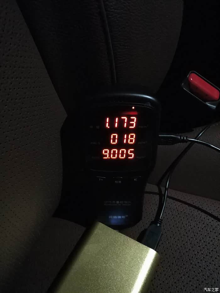 第一行为甲醛,标准为0.1,实测1.17,超标10倍;第二行为PM2.5,这个没有问题;第三行为苯类挥发物,标准为0.6,实测9.0,超14倍。这是开窗行驶1小时后,再关窗30分钟测试的……