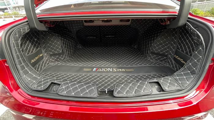 再看看来自某宝的尾箱垫,说好的不要这个山寨logo,结果还是出现了,非常扎眼啊;还有这粗糙的做工,以及浓烈的气味,生气!铺的方法还是中规中矩的,由于红红经常要装载电动滑板车,容易把尾箱边缘刮花,还是全包围的比较合适,只能将就用着,所以不快只能忽略不计了。在这里强烈建议埃安商城上架高端的全包围尾箱垫!期待!