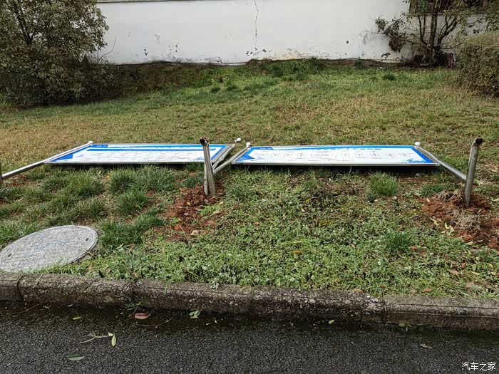 单位的宣传栏被昨夜的大雨冰雹刮倒
