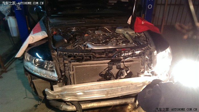 过程比较坎坷 由于检查出来是发电机三角轮有问题 所以就定了配件 但是为了保险起见把大泵的正时皮带的张紧轮和皮带也买了 不过这玩意可真**贵 三角轮加皮带才1400 大泵的张紧轮加皮带就得1300了 最坑爹的就是当我们把所有的东西换上去之后已经到夜里1点了 打火试车发现还是有异响 最后查出来是水泵出现问题 但是大半夜也订不到货啊 只能把东西收拾收拾回家睡一觉等白天去找配件了 。