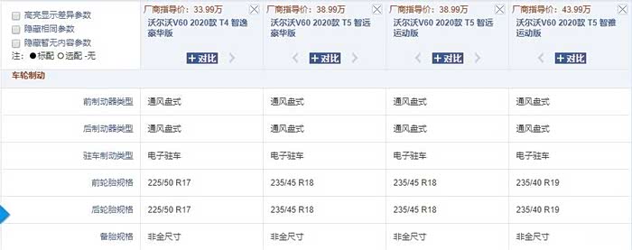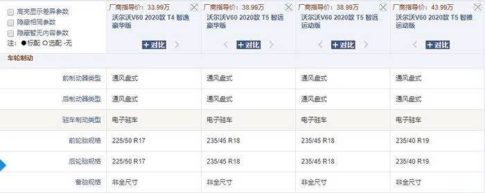 轮圈也是全新的造型,尺寸保持17、18、19寸之选,从配置表上看,尤为惊喜的是增加了电子驻车功能,这让出行暂时停车方便了许多,全车无备胎的情况得以改变,新款V60全系标配了备胎。