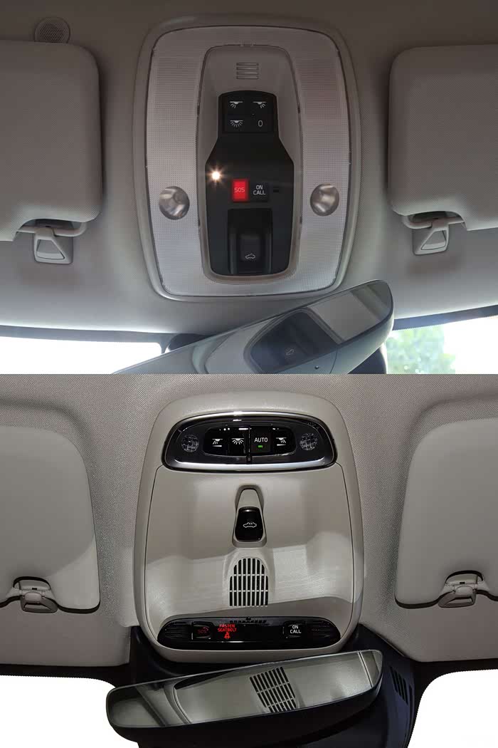 阅读灯也进行重新调整,阅读灯光源从卤素光源升级到LED光源,整体按键布局更有逻辑,on call功能按键更方便车内人员使用。