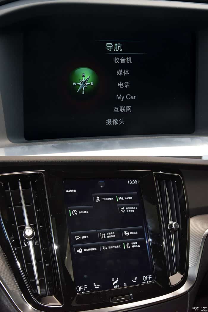 老款V60的中控小液晶屏幕被家族式9英寸触控屏幕替代,多媒体等车载功能设置都汇聚于此。