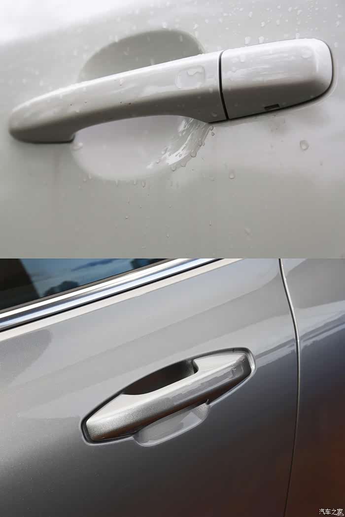 打开前车门,前车门的整体尺寸据图片看来几乎差不多,内门板的变化还是很大的,皮质包裹的负面面改变,门把手更具时尚感,特别要说的就是前排车门的储物空间,比老款车型的容量增加,开口大,更方便使用了。
