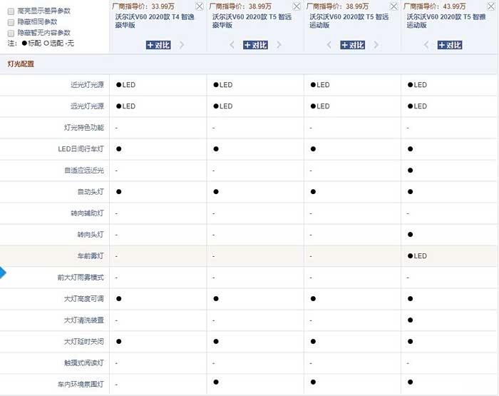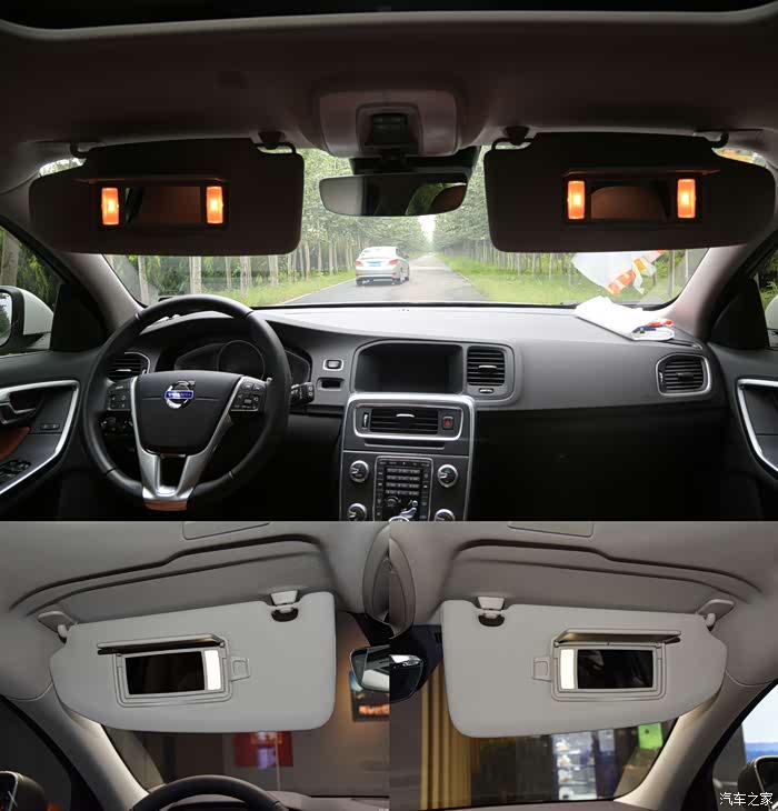 梳妆镜做了轻微调整,由老款V60的每个化妆镜的两个卤素灯泡变为一个LED光源,使得亮度提高。