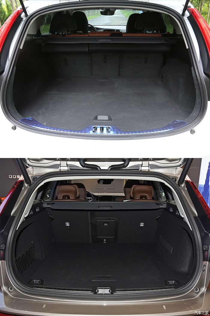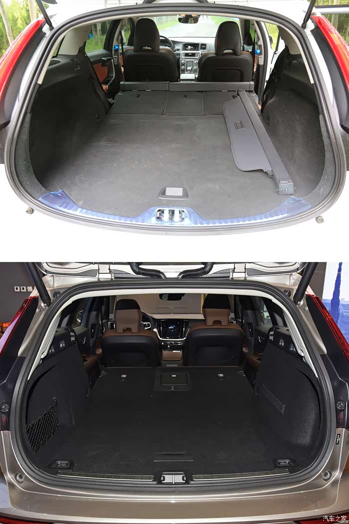 后排座位保留4/6放倒设计,老款后排座背面的防护网设计被取消,新款V60的后排座放倒比老款平整了很多。
