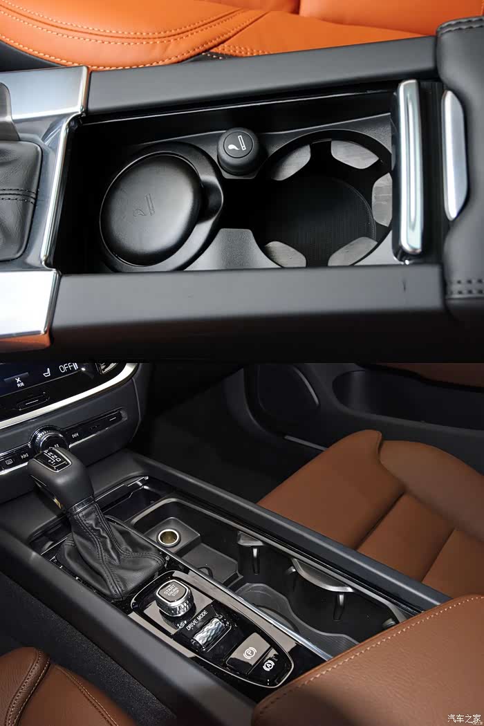 中控扶手箱的造型只为提升储物空间,相比老款车型,全新V60的扶手箱工整了很多。