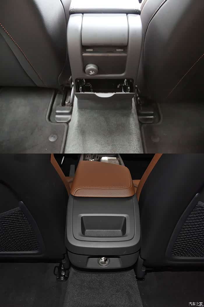 从后排看扶手箱后位置,取消烟灰缸增加储物格设计,12V电源插口得到保留,其实在这里我个人更倾向于USB设计,相信很多人像我一样,在这里会先择一款USB转接头一直插在这里。
