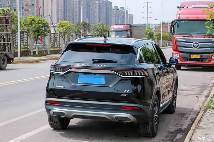 重点说说北京X7的第一印象,第一次看到这个车的时候,我就感觉很顺眼,可能是因为大灯的形状很流行,后屁股还有一条连贯起来的红线,样式就是很潮流,这外观直接就把我给圈粉了。