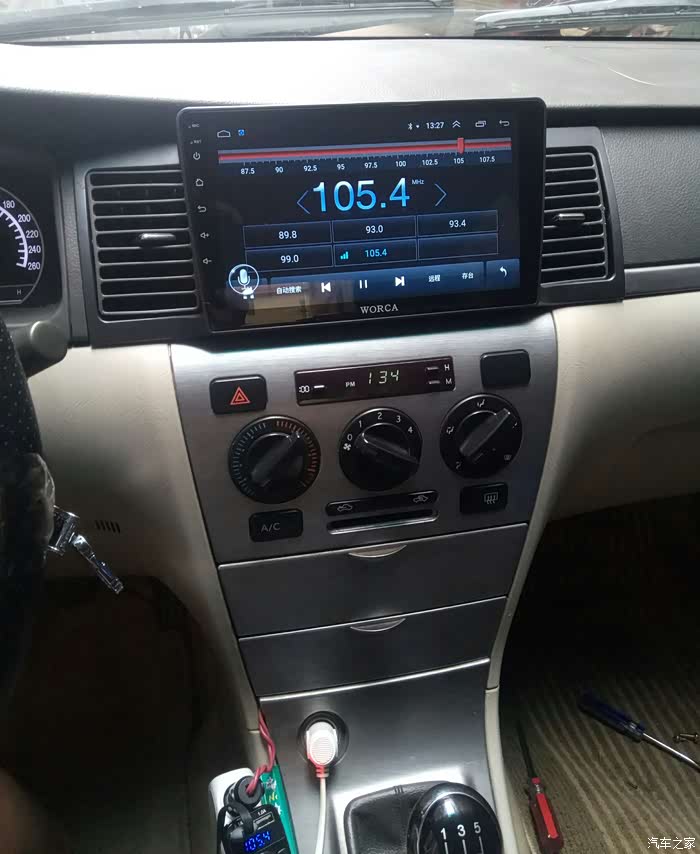 新导航边框左上角比原车的突出一点用刀削平用力推进去卡扣卡牢靠,收拾工具折腾结束!