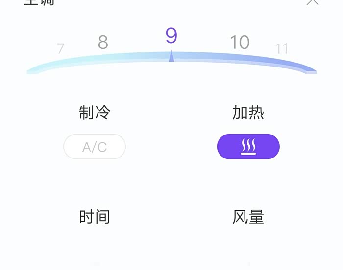 进入空调选项,可以根据天气情况来选择空调温度和启动时间