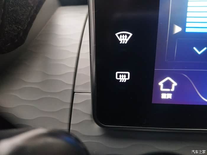 另外,上车之后在中控屏左侧最下面有一个后风挡加热按钮