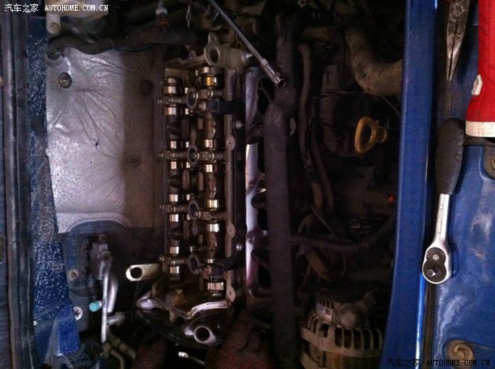 这是在修理厂拍的,发动机拆到这里,那个正时链条矫正工具没有,就停在这里了。。