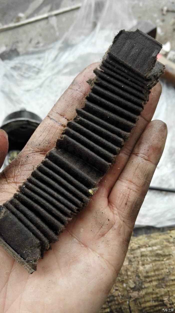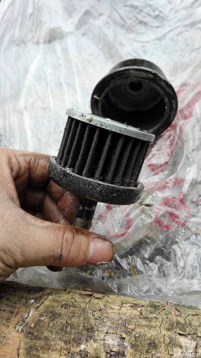 首先看看这是我车上原装的用了将近9万公里的旧滤清器