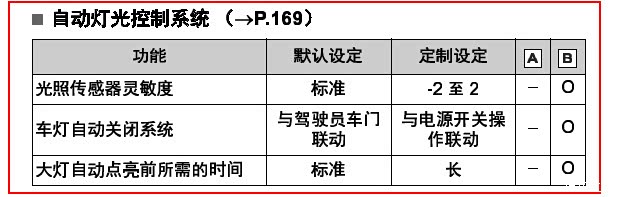 在说明书里找到 降低大灯白天开启灵敏度, 熄火自动关闭大灯 定制选项了。