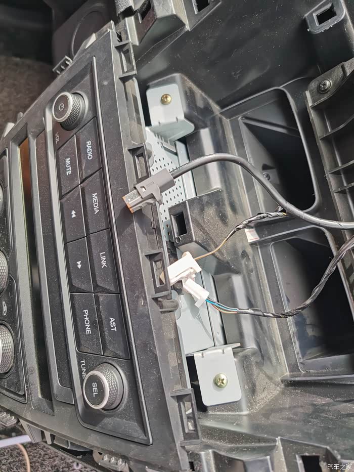 拆掉这两颗和底下两颗螺丝,这一块儿面板连着音响主机一起拔下来
