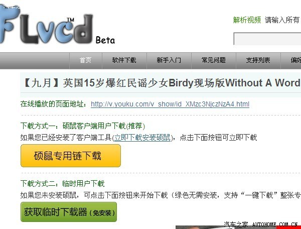 点了解析之后会打开下载地址。先不要点左下的用硕鼠下载该视频。先点下红字的高清模式解析。