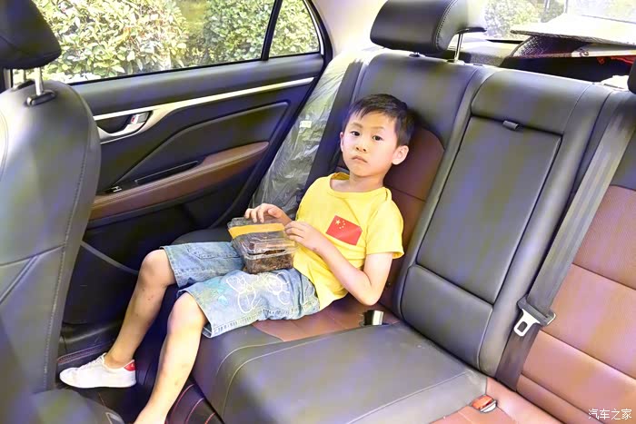 小于12岁的儿童是不能坐前排,宝宝的坐在后排,中央扶手放下正好可以放置宝宝的水杯,空间及储物盒设计很贴心。