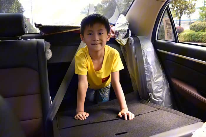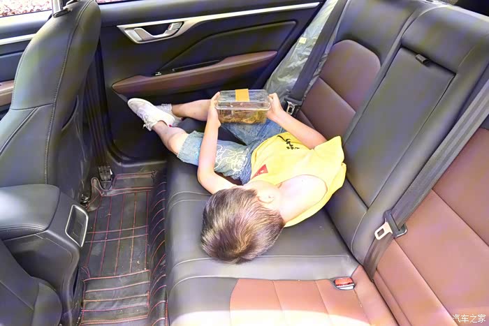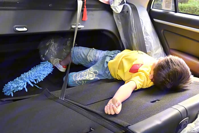 练了一个上午,感觉有点累,提前开好空调,上车就躺下,这后排空间宽敞,远景带娃很合适。