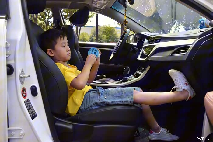 宝宝很惬意的坐在后排。