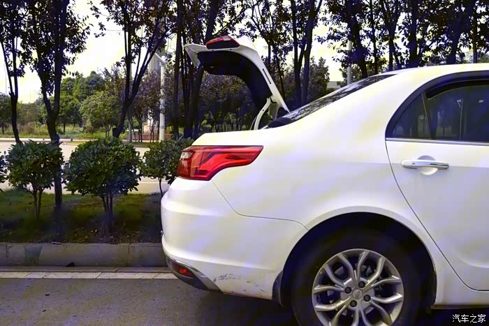 后背箱为电动开启,轻轻一点即可,不会出现像有的车开后背箱时,低头把油箱盖开起来的尴尬。