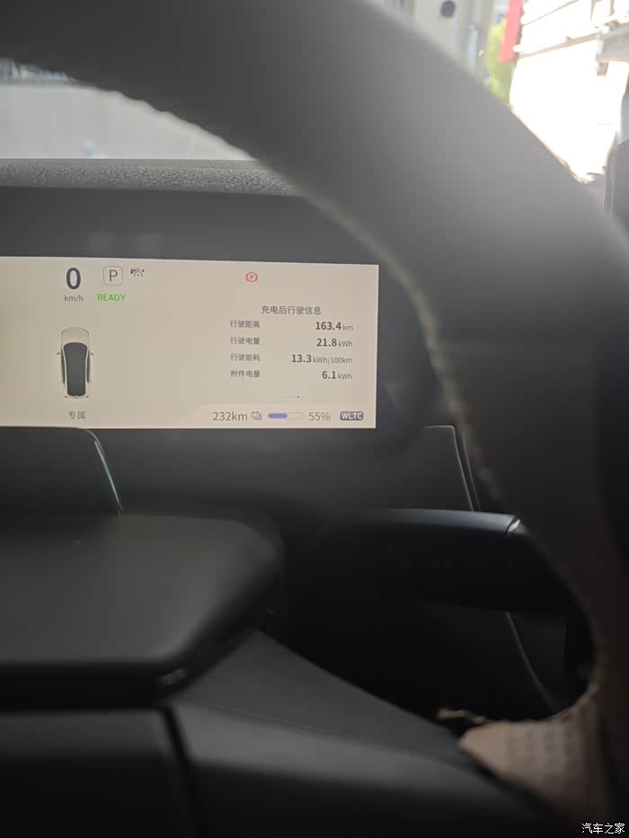 ★这次返回的时间是下午,比之前夜间开车安全多了,路上工程车会比较多,市区也会相对慢一点,不过哪怕是临到家比较堵的路段,也能听听歌曲打发时间,算是堵车不堵心。一来一回看了一下平均能耗大概13.3kWh/100km左右,回来的这一趟我用视频记录了一下,34左右的公里数,耗电9%,比去的时候多了2%,相差不多。