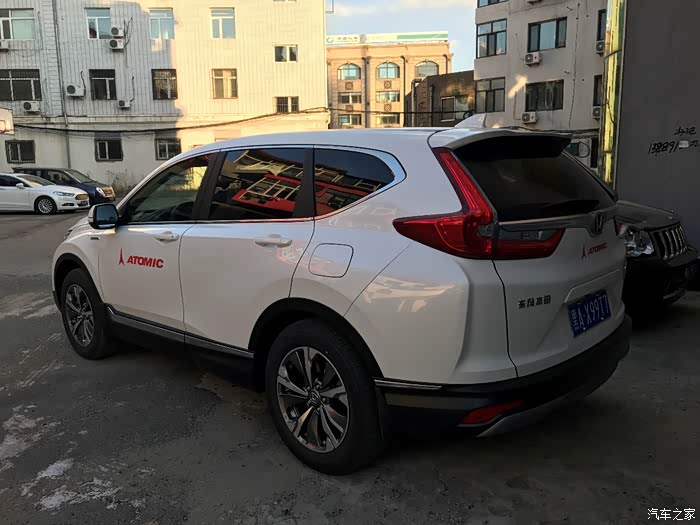 坐标哈尔滨,CRV混动是家中的第四台车了,选型没啥纠结的,就是想找个堵车不费油、噪音小的、加速迅猛就可以,开过雅阁混动感觉很好,看了CRV混动的上市评测就确定这个了。原定要混动低配需等2周,某日下午接到4S店小弟(家中还有两台本田车都是从这个小弟手里提的)的电话,有台预定的混动中配贷款没下来车到了,问我要不要,直接回答留住,20分钟后开车到南直路4S店交全款没被加价,然后才看了一眼车,简单拍了几张照片,告诉小弟把车收拾干净预备好合格证、买好保险(交强)第二天下午直接提车,4S送了贴膜、行李架、备胎等,告诉安装好挡泥板,小弟又给我要了丝圈的脚垫。第二天下午提车什么照相系红布条都不用,3分钟点清随车物品和手续,开车就走人,出了4S店门才发现续航已经是零公里了,加油站不远,355元加满。直接开到已经联系好修配厂喷地盘装甲了,拆排气管和地盘的一些护板后整整喷了12瓶,厚厚的一层噪音小了很多,家里其他的车也都新车喷这个,哈尔滨雪后的融雪剂对地盘有腐蚀的。CRV的原车喇叭和电动助力车似地清脆如百灵鸟,和本田杰德的蜗牛喇叭差距太大了,虽然喇叭基本不按我承认我有点强迫症,马上联系的汽配城的朋友,预备好蜗牛喇叭和座椅加热、行车落锁升窗器、行车记录仪电源线,隔天去安装几个小时都搞定(后面有照片)。落牌照办理相关手续就一上午的事儿,这几天正好有点小忙,每天在平均时速15公里的堵车条件下跑3-4个小时,油耗6-7个包含等人在车内热车的燃油消耗,比我原来开的杰德低多了,杰德在此种温度同等条件下要12-13个油(杰德最近一次230元的油跑了270公里,感谢乙醇清洁汽油)。CRV混动的行驶感受极好,制动力保持太好用了,过大红灯的时候原来都是N档加脚刹然后再N档松脚刹,车流中蠕动跟车不累不用长时间点住刹车。混动中配的音响效果一般,和我原来改的惠威喇叭音质相差太大,但是原车音响喇叭是纸盆的,冬天低温音质影响不大,反而高档音响喇叭是橡胶折边的低温很难听。车内异味有点不多,座椅绵软舒适,液晶仪表显示很对我胃口,杰德更直观。倒车影像比杰德的尺寸小开始不适应,像素也真心的低。全车LED光源,车内小灯同样是LED。全景天窗只能开个小缝,对,咱没花敞篷跑的钱呀。前机器盖子两侧有突起,视觉很不适应。胎压放到2.5噪音小不说更舒适了,提车时3.5能感觉出颠。按键式换挡要有熟悉过程,不如挡杆快速变换盲控,目前还要瞄一眼。环城路跑过135时速,80-130加速还可以接受,但是和涡轮机器比确实有差距。0-80公里加速就和3.5自然吸气车似地,而且油门没有时滞,随踩随走提速变线凌厉,甚至快过转向灯,市区内很爽,起步想不惯着就能有点拉胎的小摩擦,当然30来年的驾龄永远是安全第一。被同事给我的车贴了某个滑雪品牌商标,挺好看的,随便拍了几张照片,据说认证需要车钥匙。
