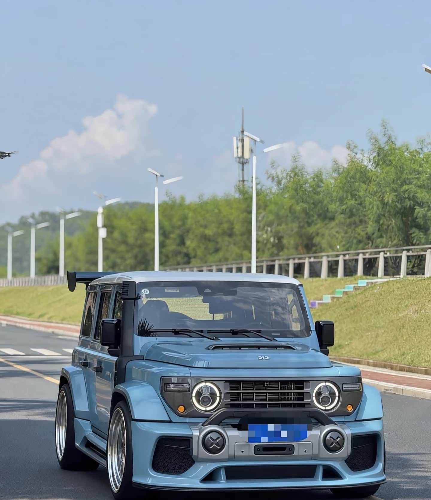 作为北汽212焕新后的车型,经典方盒子造型+圆形大灯还是那味儿,外露的车门铰链、背负式全尺寸备胎,往那一站就自带越野气场,回头率比同价位城市SUV高多了。最实在的是底子够硬,非承载式车身+前后硬桥,这配置在牧马人、LC7系上才见得到,素车235mm离地间隙、40°接近角,跟车友跑涞水黄花梁的泥地、碎石路,同行的城市SUV磕底盘的时候,我直接骑过去毫无压力,分时四驱切4L模式,扭矩放大2.5倍,陡坡二挡就能爬,原厂胎应付轻度穿越完全够用,不用额外改装也能野。