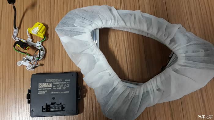 拆下来的低配网关,和气囊线。有两个线,一个是自动舒适上的,有三个铁片,一个是手动舒适上的有两个铁片,不知道是批次不同还是手动档和自动档的事。