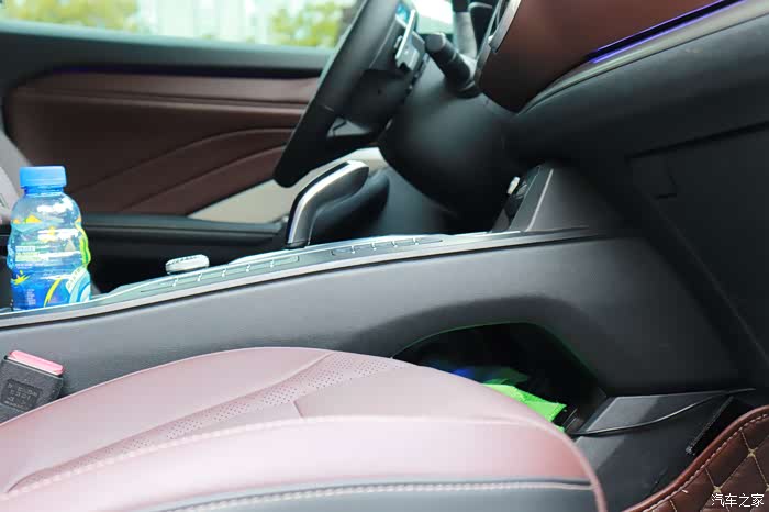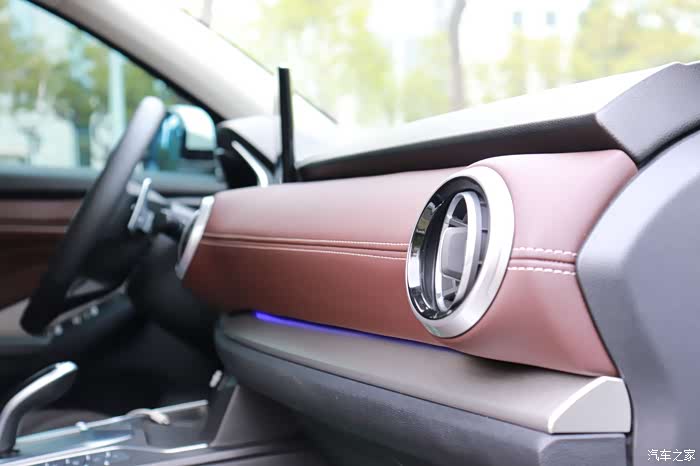 内饰里面的这种豪华质感还是相当不错,皮质的包裹氛围灯点亮的时候也是很有气氛。