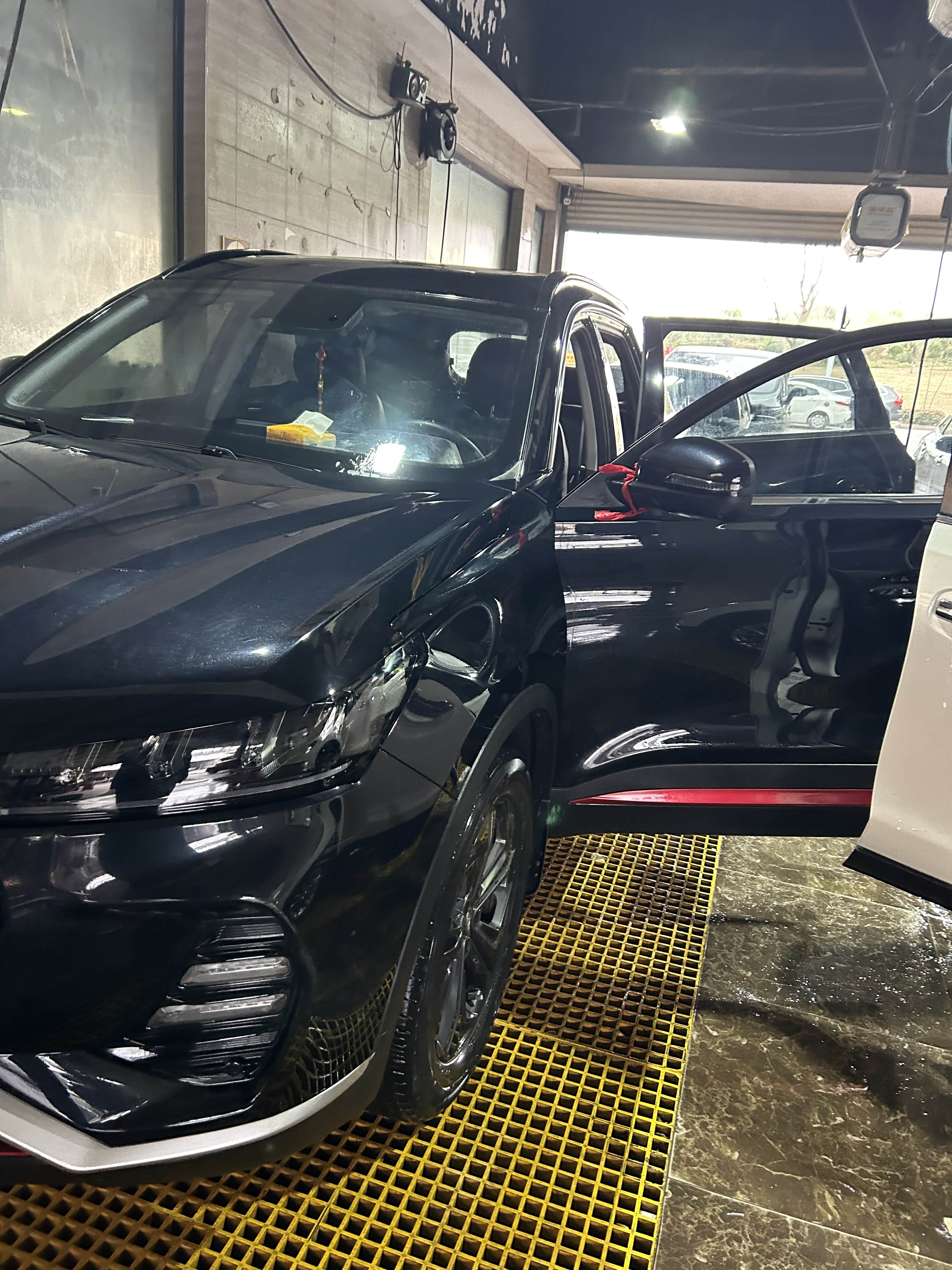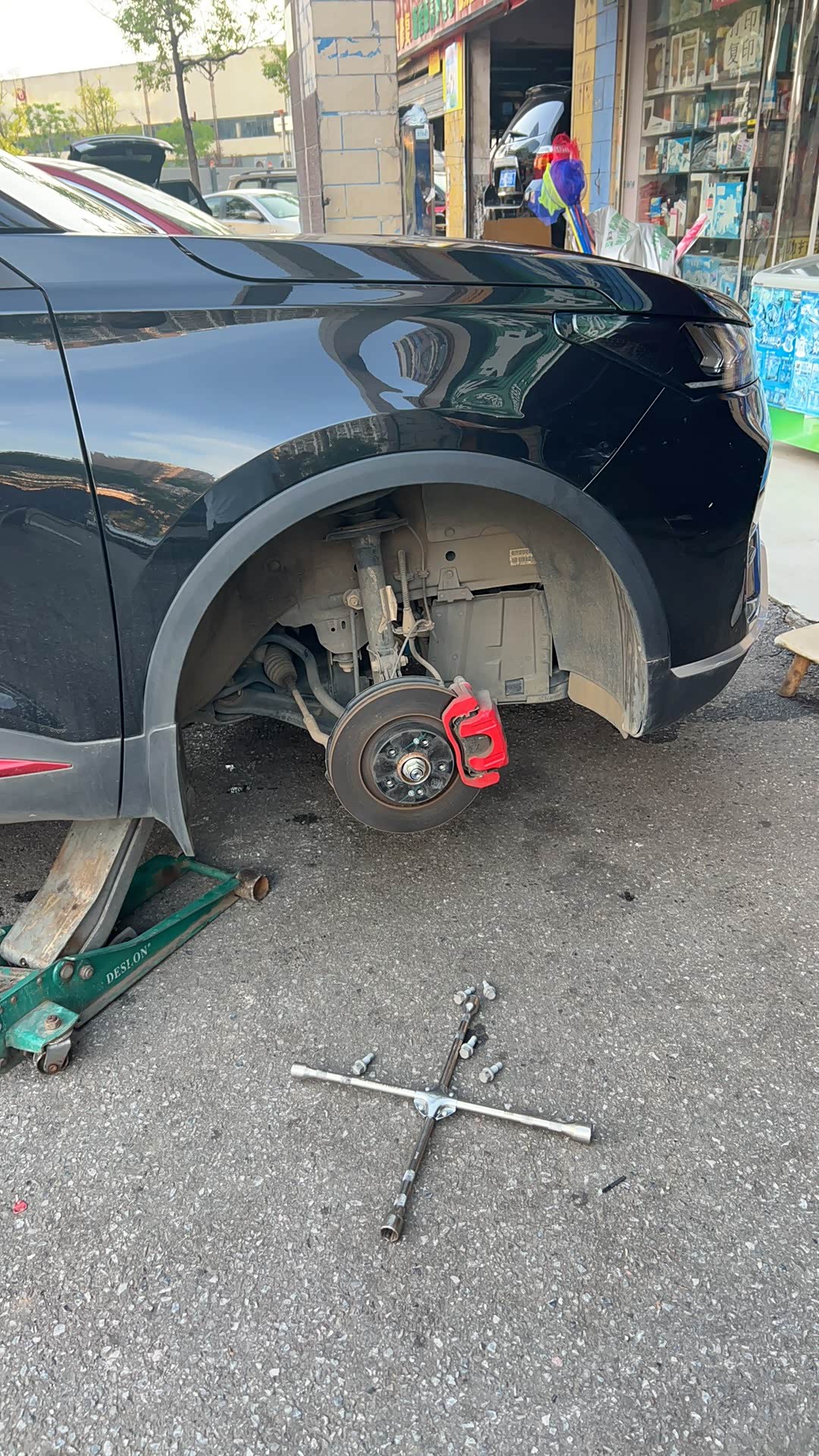 上周五回家,我驾驶虎7等红绿灯的时候开了窗户,然后听到了车胎上传来的啪啪的声音,我以为是轮胎夹了石头发出的声音,刚开始并没有在意,但是声音越来越大,越来越难以忍受,我只好停车在路边,想把石头撬下来,等我仔细检查发现是一个大头钉扎在车胎上,它终于迎来了第一次"受伤"——车胎被扎了钉子,看样子扎得蛮深,徒手拔不出来,我上车重新检查了下,胎压没问题,只好再坚持一下,坚持了没多久就找了路边一家修理店开进去维修!
