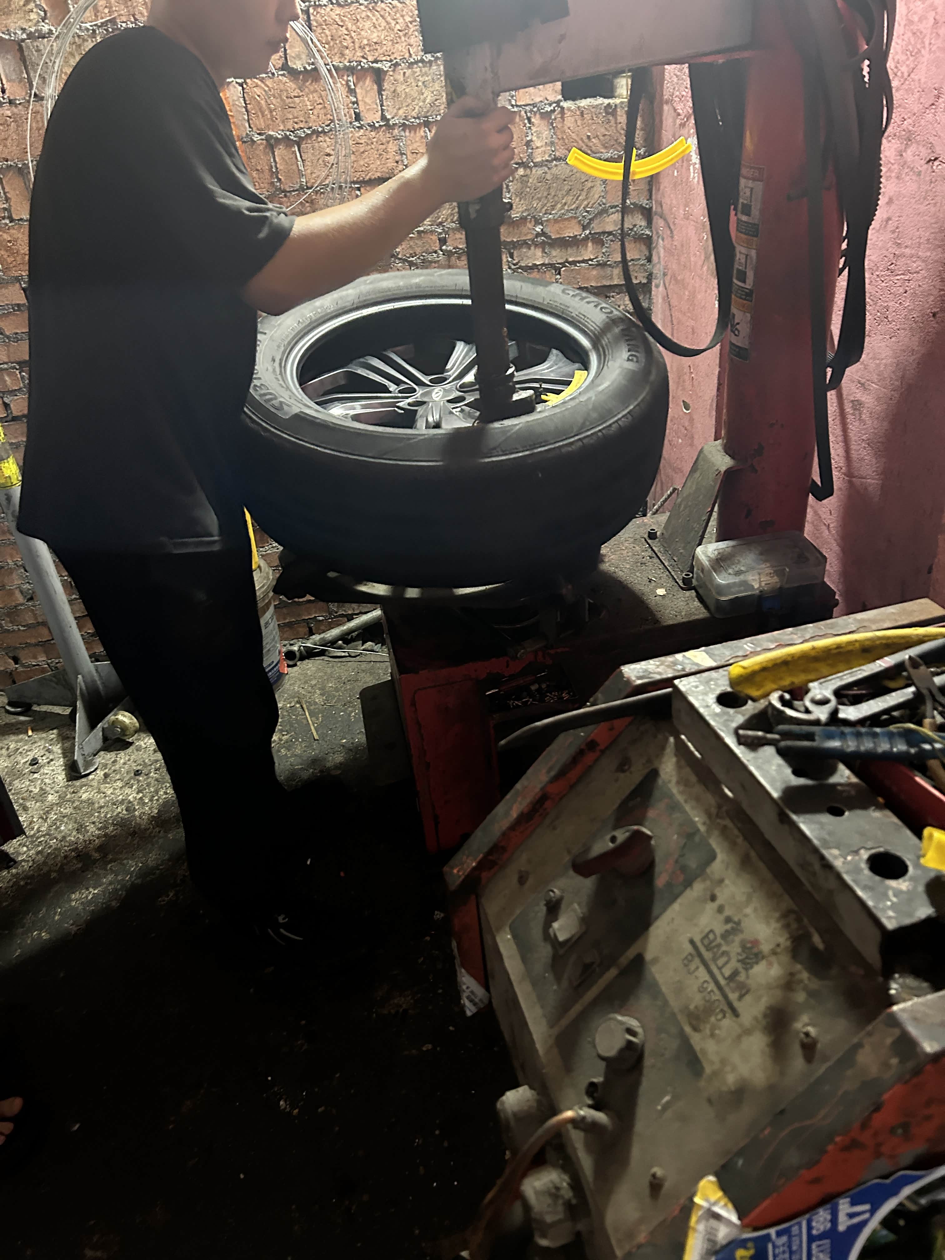 师傅先找到车胎扎钉的地方,用气泡水做了测试,漏气,但是挺慢的,试着把钉子拔下来,但是扎得太深,拔不出来,看了一下情况,跟我做了报了价,40元,因为我也没有类似经验,也算了下40元大概要用多少人工,加上技术含量,不算贵!
