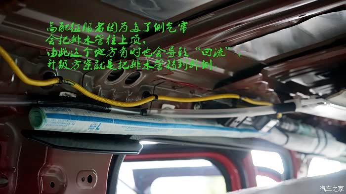 高配版的多了2侧气帘,排水管也要做相对应的改变,低配跟中配是不需要的。