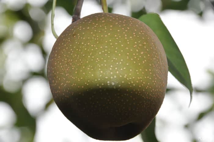 果实圆形,果顶稍凹,嘴钝,缝合线较深而明显,柄短,梗洼深,色泽微粉红,果肉白色,粘核,于九月上旬成熟。
