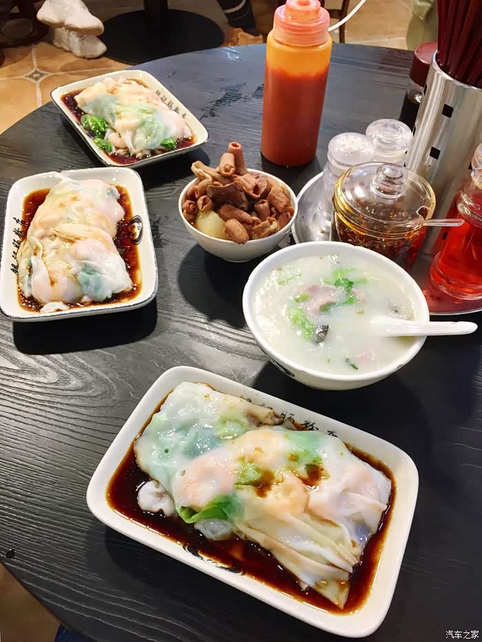 我第一次来广州的时候就吃到了他家肠粉,也是在当时的酒店楼下,那时候还不流行什么大众点评,我只看到他家分店挺多的就进去了,谁知从此以后就魂牵梦萦,每一次来广州都必吃,真的是吃再多都不会腻!肠粉滑滑糯糯的,柔软又有点韧性,里面的虾仁鲜甜又饱满,蔬菜又是我最爱的生菜,再佐以他家的甜酱油,天呐就这个酱油水我都可以喝一大碗,好吃到无法形容。可以说我每年都是冲着他家才来广州的,因为早茶粤菜店贵阳也有做得还行的,唯独就是没有肠粉。
