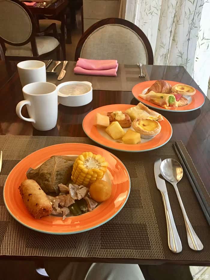 早餐一如既往在酒店餐厅解决,因为正好赶上洲际做特价20元早餐活动,品种丰富味道也不错,原价的话我肯定是拒绝的,还是宁愿吃智选假日的免费早餐。还有昨天没吃完打包的食物交给服务员帮忙加热,没想到很贴心的换了很有广东风味的公鸡碗装好给端回来,好萌。