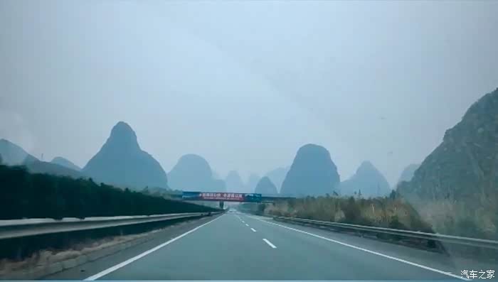 今天上高速感觉整个人轻松了不少,大概是习惯了,不会有太多心理负担了。经过阳朔时就看到了大片的奇山异石,路边长满了芦苇,阴天之下竟觉有种荒凉美。长长的一段路都是这种景色,还真是大饱眼福,然后突然后悔应该在这儿多待一天,看看甲天下的桂林山水,尽管作为贵州人是看惯了山水的,但贵州的山很少有像这种一个个独立凸起的小山峰,大多都是高高的连成片的,唯一有点类似的是在兴义万峰林,从飞机上看下去就像鸡蛋格似的。