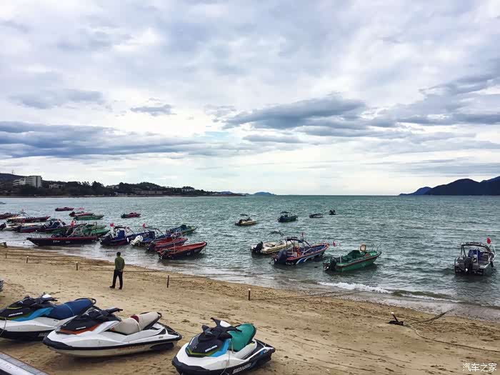 走了好长一段路才到海边,天气依然是阴沉沉的,甚至还有点冷,好在带了羽绒服,发了条朋友圈说这辈子第一次裹着羽绒服看海。沿岸都是民宿和海鲜餐厅,沙滩上也堆了很多游艇、水上玩具,看得出夏天这里是挺热闹的,可惜这个季节、这个疫情,哪里都是冷冷清清的。