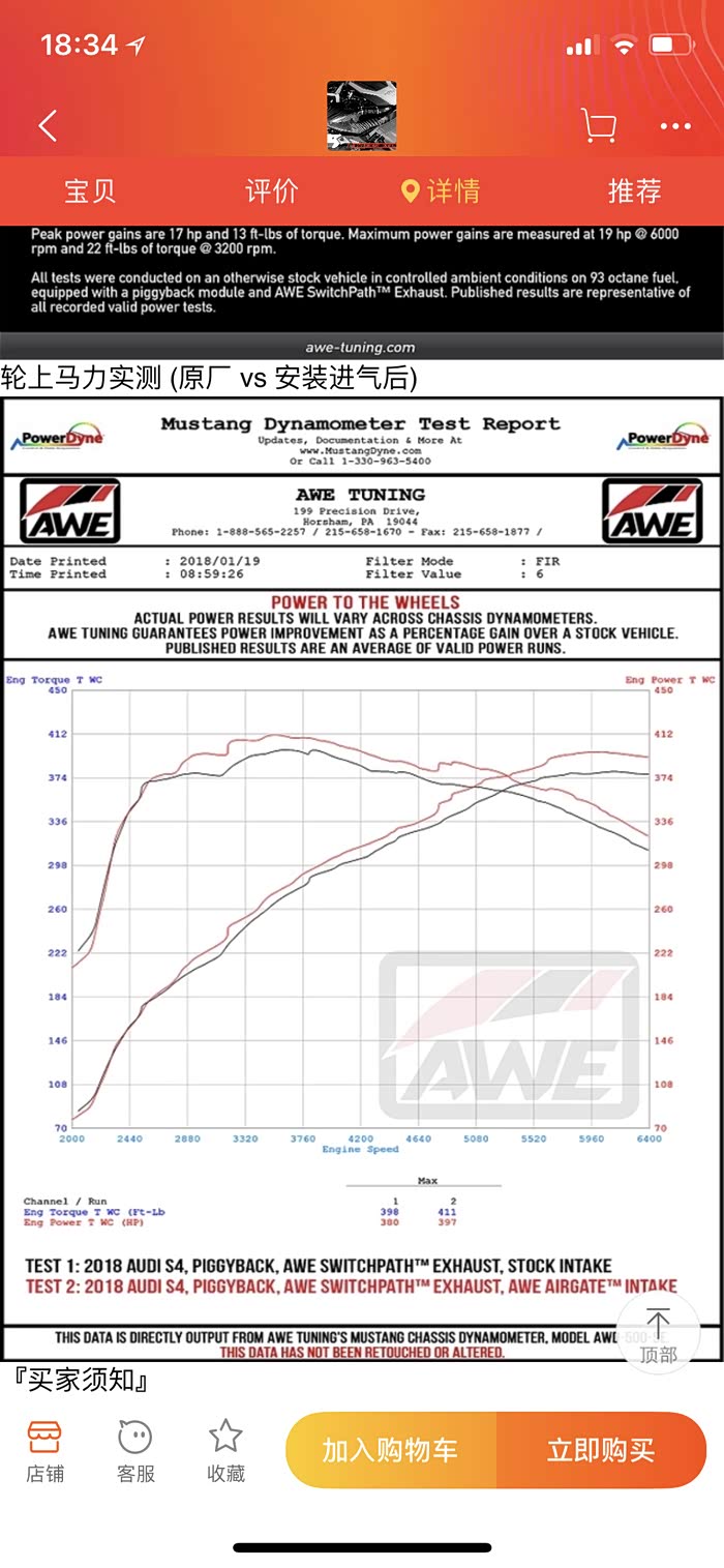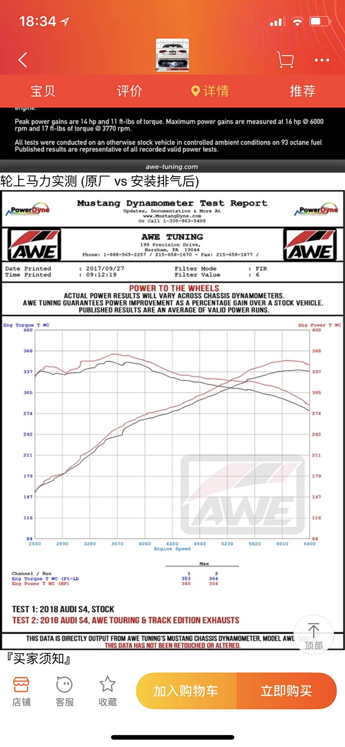 马力机的图来了,340匹,353 ft-lbs。图里有个亮***的地方,经常玩改装或者马力机的车友可能已经看出来了,没错,这是用Mustang Dyno跑出来的数值,众所周知这种马力机测得的数据是最低的,比常见的dynojet要少,具体少多少取决于SAE的校准(关于马力机之间的区别足可以另写一篇帖子,故在此不深入讨论)。那这意味着什么呢?