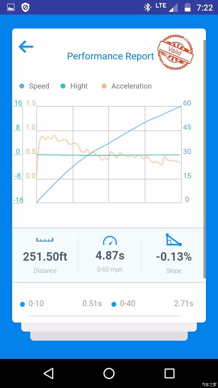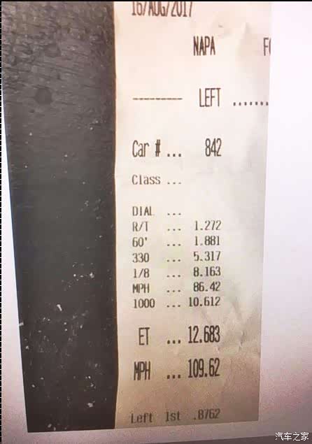 下图是一个美国车友去专业1/4英里场地跑出来的,12.683s,尾速175.4km/h,弹射起步,温度21度,高于海平面27米。之所以跟BMS的差距这么大,估计跟地面有关系。这个成绩可以说是很不错了。惊不惊喜?