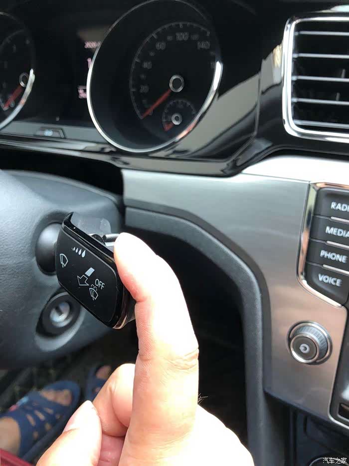 再次入车内,接通电源。往下轻拨一下雨刮操作杆,雨刮器就会自动回位了。