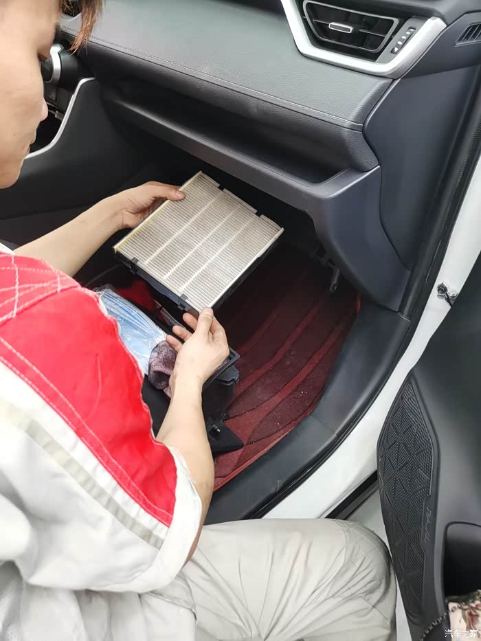 开进车间下车前师傅检查灯光雨刮,下车师傅也是第一时间打开机盖,然后把空调滤清器和空气滤清器都拿出来放一边,检查后该清洁清洁该换就换,需要换的师傅会写在单子上的。