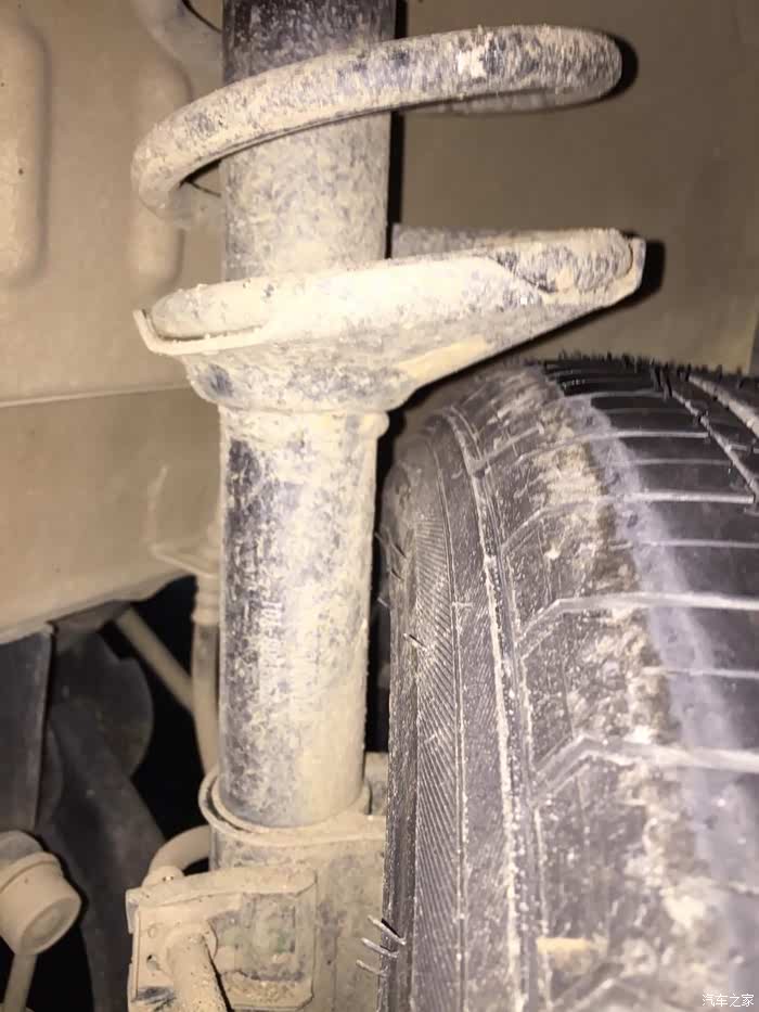 16寸195胎装车后前轮的胎壁会隔减震杆比较近,但是不用担心,减震弹簧托盘下段是死的,没有活动上下行程,只要不会擦到还有距离就没事!