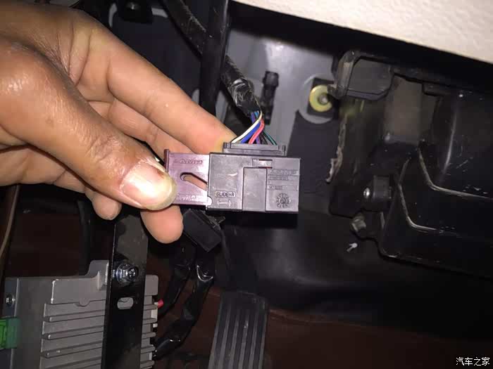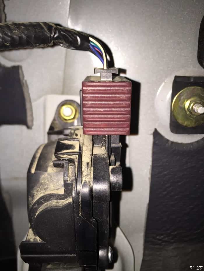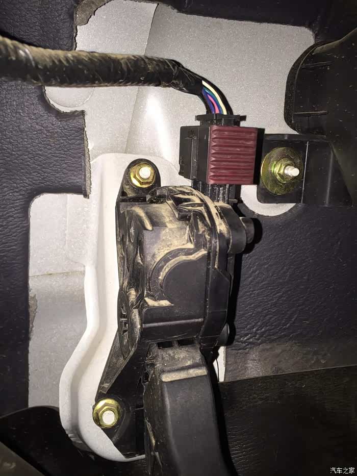 电子油门的新星油门踏板是塑料的,上方是一个电子插口。
