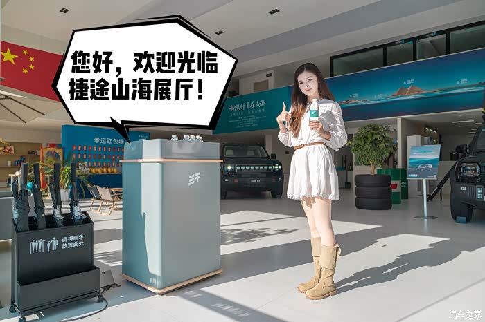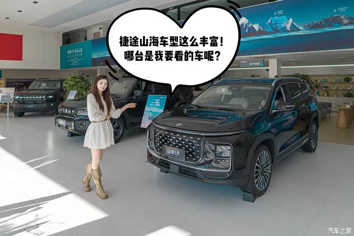 展厅内摆放的新车,都是捷途推出的插混SUV家族的产品,比如这台山海L7,定位家用大七座SUV,身后的山海T2也不一般,上市四月斩获“混动方盒子”的销量冠军,而捷途旅行者更是稳居方盒子车型销量榜榜首位置,毫不夸张地说,捷途汽车是方盒子领域卖的最好的品牌!