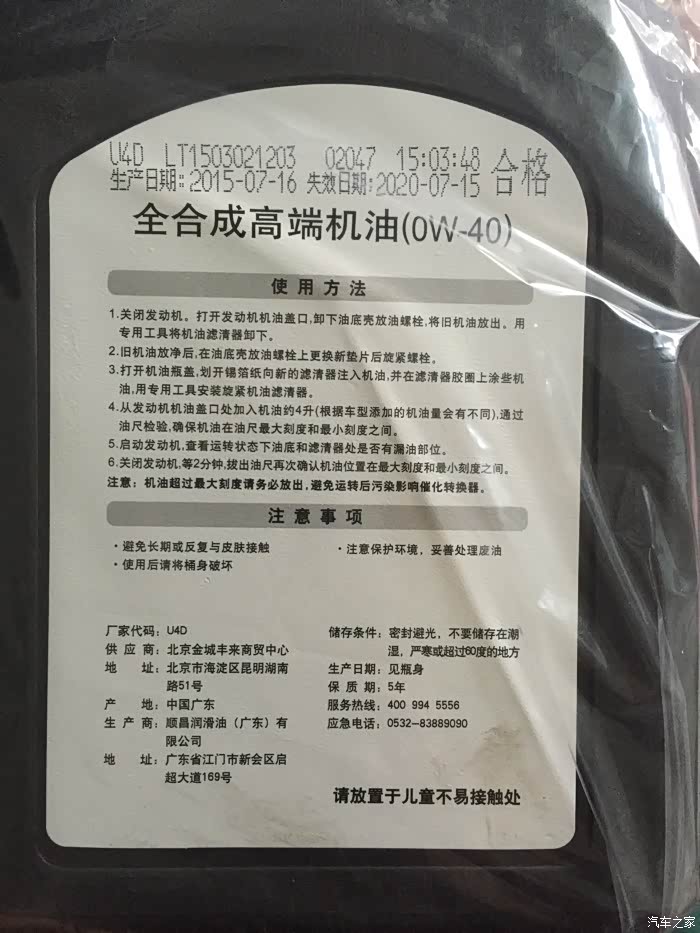 换了550的0w-40,但是瓶子上没有任何标志,不知道是什么牌子的。因为想从网上买机油,看到人家的都有牌子的,4s这个是不是有问题呢?