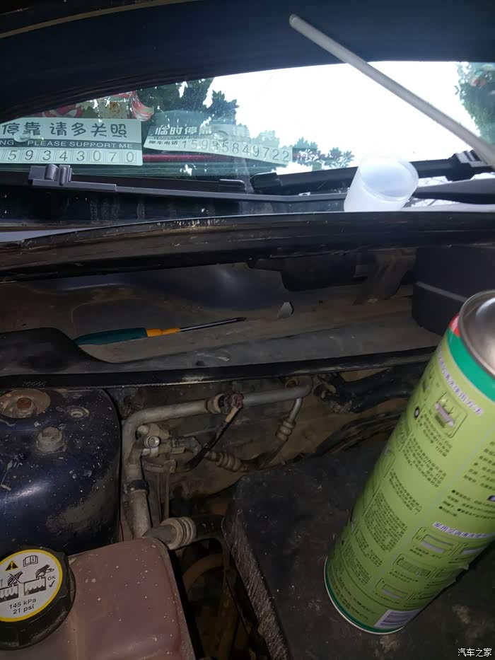 自己一个人弄没人拍照片,打开空调,外循环,风力最大,用清洗剂往进风口喷,大概喷一半进去,然后熄火让清洗剂在风道腐蚀脏的东西。五到十分钟。然后打开空调开暖风吹十五分钟,把风道里的水分蒸发掉。