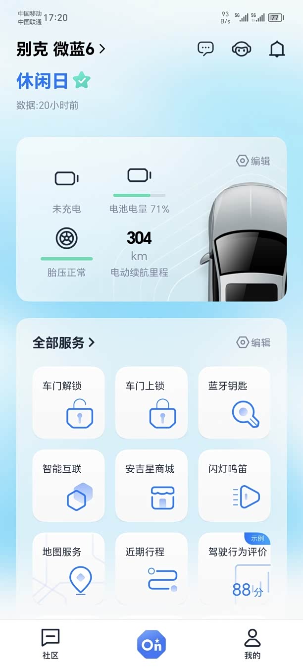 再说一下大家比较关心的安吉星问题,我这提车前一天很容易就注册成功了,胎压监测,开锁关锁什么的可以使用,其他的地图,行车轨迹,定位啥的都不能用😂