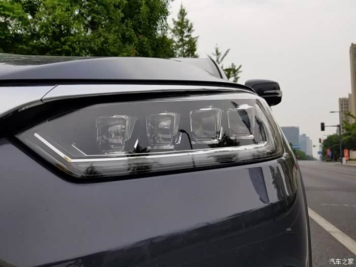 近距离拍的大灯特写,后面采用了贯穿式LED尾灯,前面悬浮式LED大灯