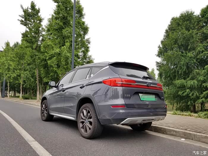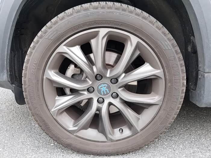 它这个轮胎和整车车身比较相配,不会显得车大轮胎小之类,而且轮胎上蓝色宋标识还是亮眼啊。
